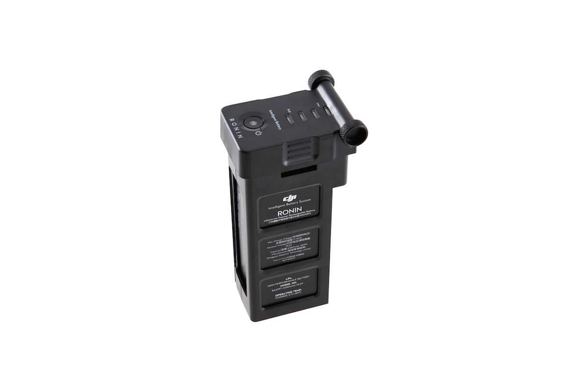 Аккумулятор для Ronin прост в установке и использовании. Зарядка аккумулятора происходит при помощи входящего в комплект поставки DJI Ronin специального зарядного устройства. Аккумулятор отображает оставшийся заряд индикатором непосредственно на корпусе батареи. Защита от перегрузки и чрезмерного разряда встроена в аккумуляторную батарею DJI Ronin. Время работы от полностью заряженной батареи составляет около 6 часов, в зависимости от используемой камеры, дополнительных аксессуаров и температурных условий.