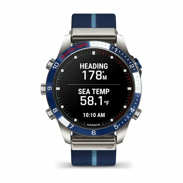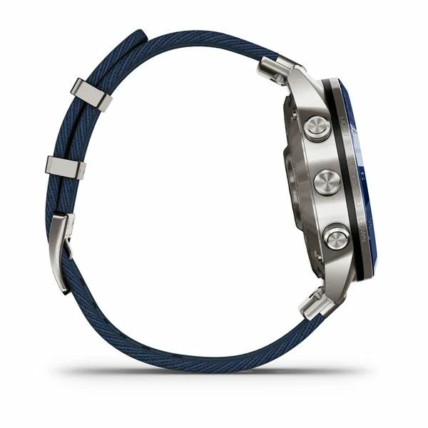 Эти современные часы-инструмент класса люкс, созданные специально для жизни на море, включают полосатый нейлоновый ремешок в технике жаккардового плетения, великолепный сенсорный дисплей AMOLED, управление с помощью традиционных кнопок и корпус 46 мм из титана Класса 5. Использование высококлассных материалов обеспечивает повышенную прочность.